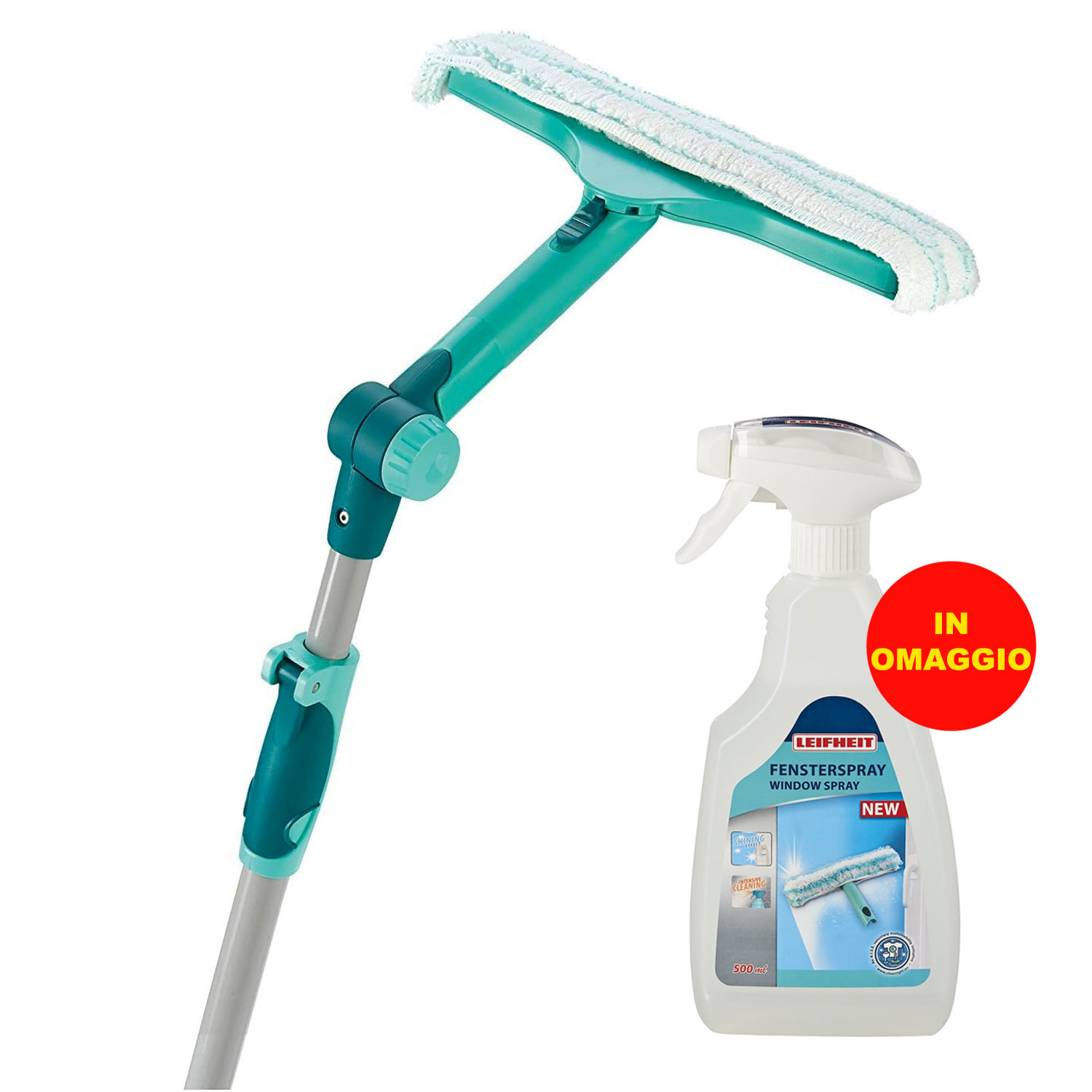 Confezione Leifheit Window & Frame Cleaner L Telescope Tergivetro professionale. con asta telescopica estensibile da 110 a 190 cm. larghezza fodera pulizia 32 cm. codice articolo 51120.